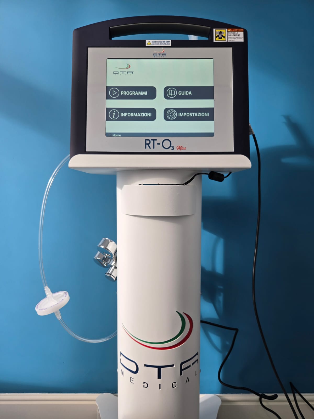 L'ozono utilizzato a scopo terapeutico viene prodotto direttamente durante la seduta mediante un generatore medicale certificato, a partire da ossigeno medicale puro.La miscela ossigeno–ozono viene somministrata a concentrazioni precise e controllate, scelte dal medico in base alla patologia, alla sede da trattare e alle caratteristiche del paziente.Questo garantisce efficacia e sicurezza del trattamento.